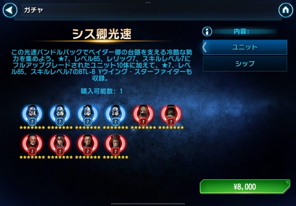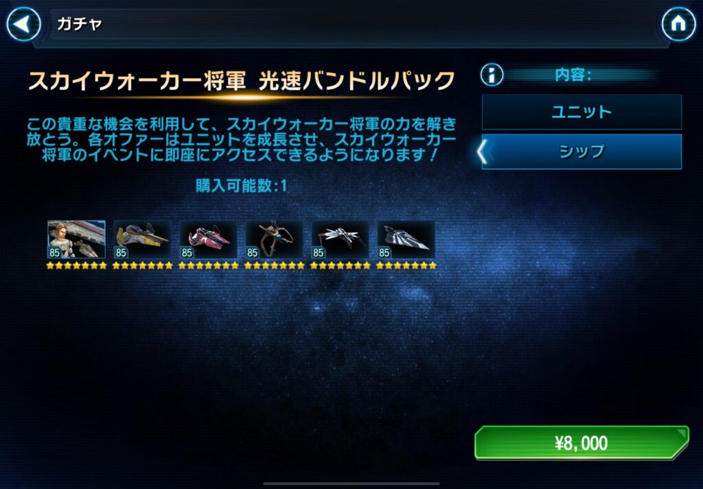 主要キャラが12名をレリック3、ネゴシエーター完凸、ネゴシエーター用のシップ五機もついて同じく8,000円です。