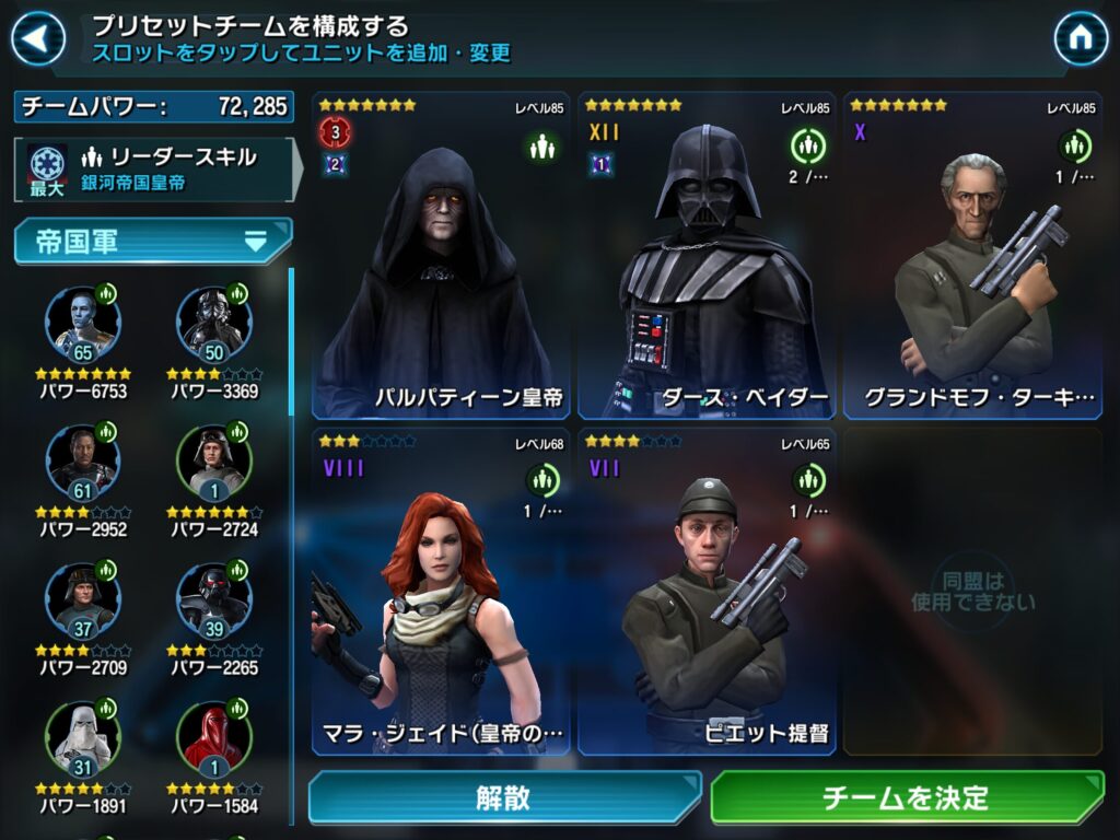 その結果レリックまで入っちゃったパルパティーンがトップになりましたが、本当は装備レベル9&ゼータ無しで終えています。