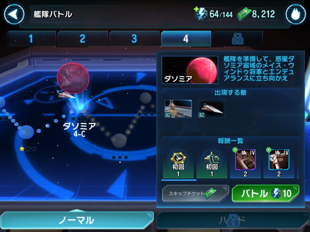 現在、艦隊バトル•ノーマル4群の頭で止まっています。
