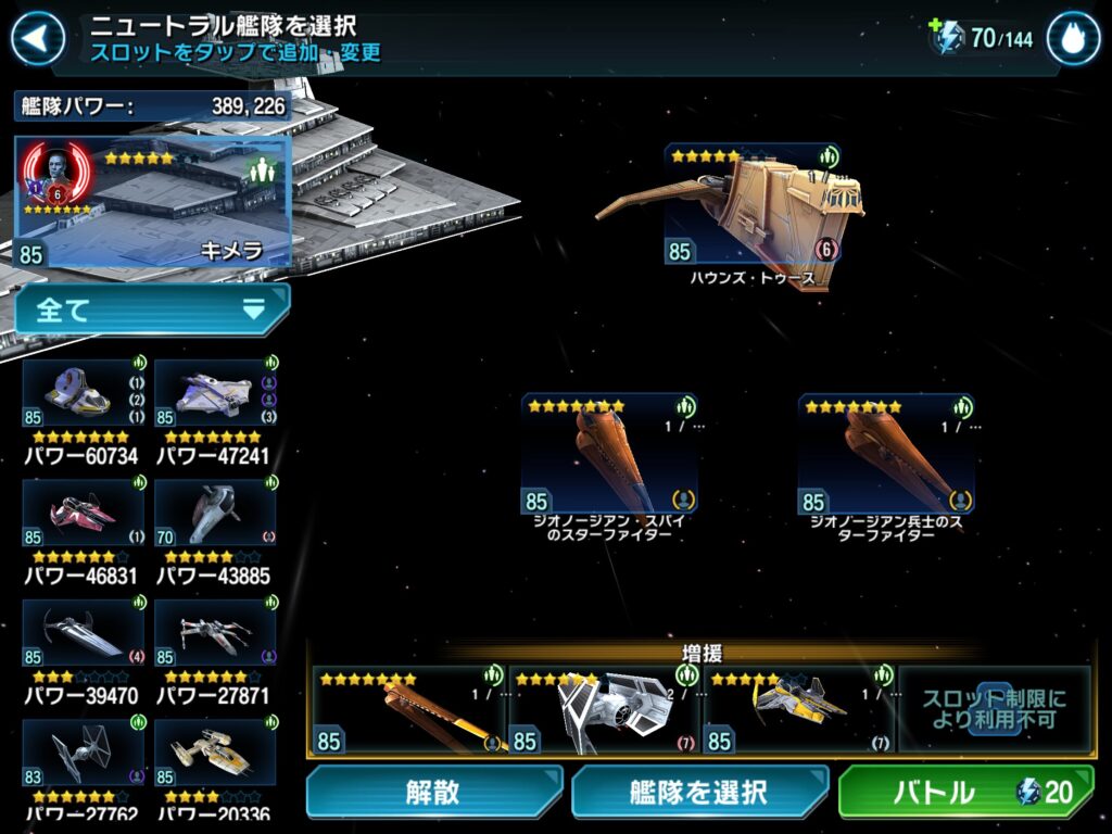 前回のターキン+ジオノージアン艦隊ではハードで4ーBまでが限界でした。