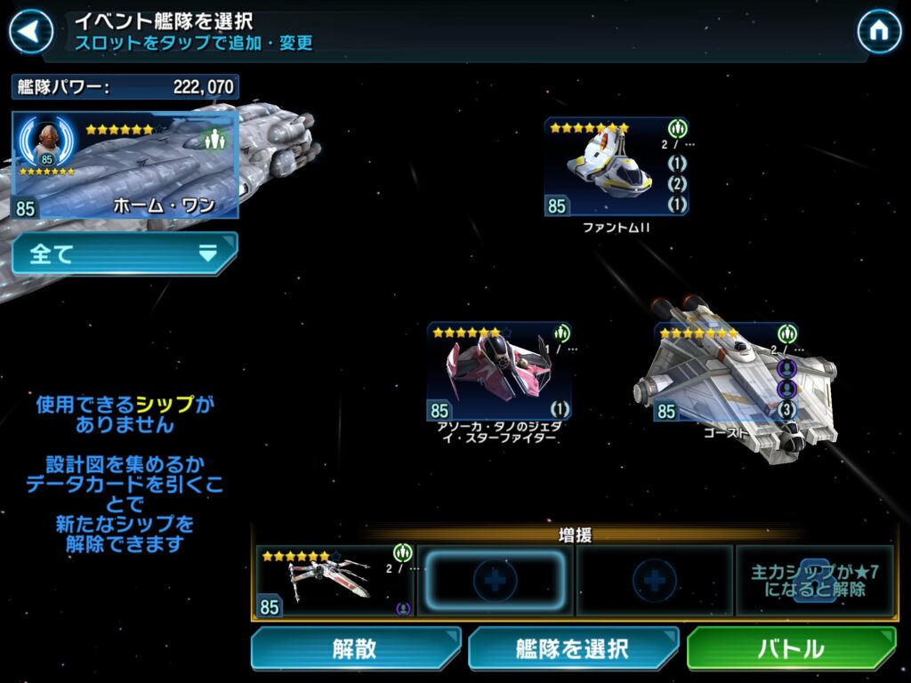 最近になってようやく星6のライトサイド・シップを揃えられたので、母船のシャード獲得イベントに挑めます。