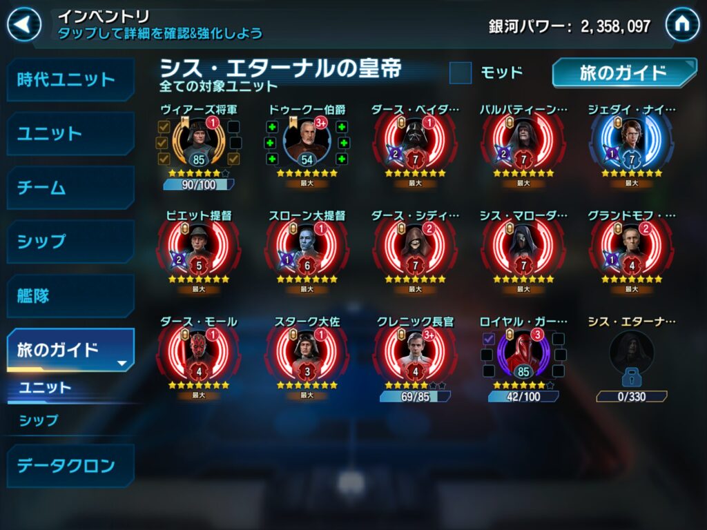 これでダース・シディアスを一気にレリック5へ引き上げられました。