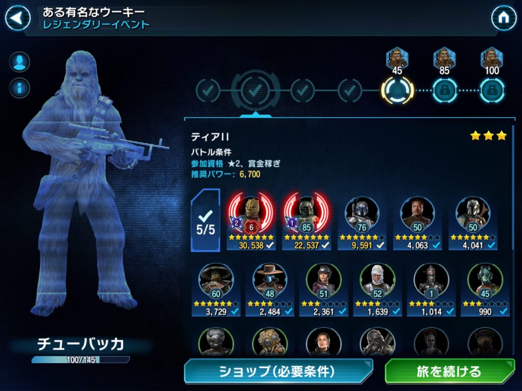 旅のガイド”チューバッカ”の各ステージに2人います!(ハンソロとランド・カルリジアン)