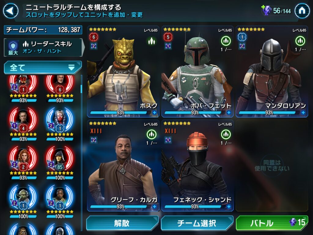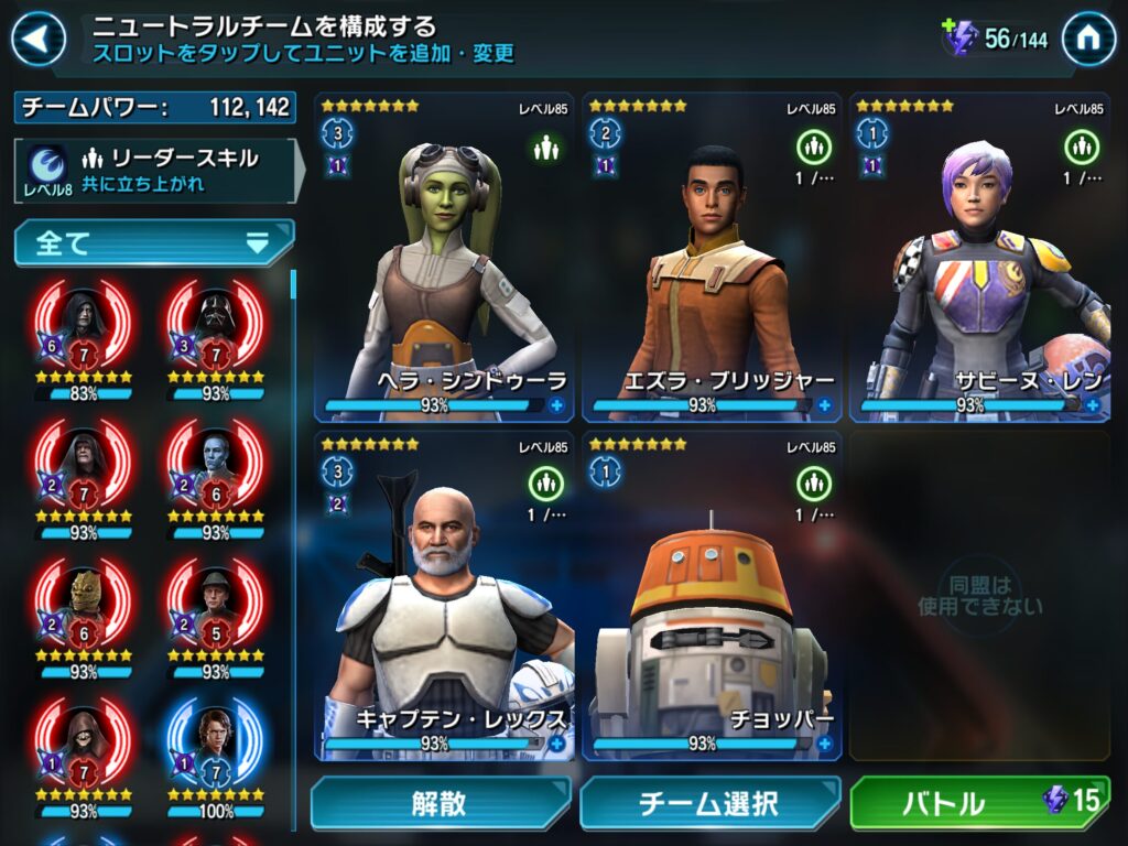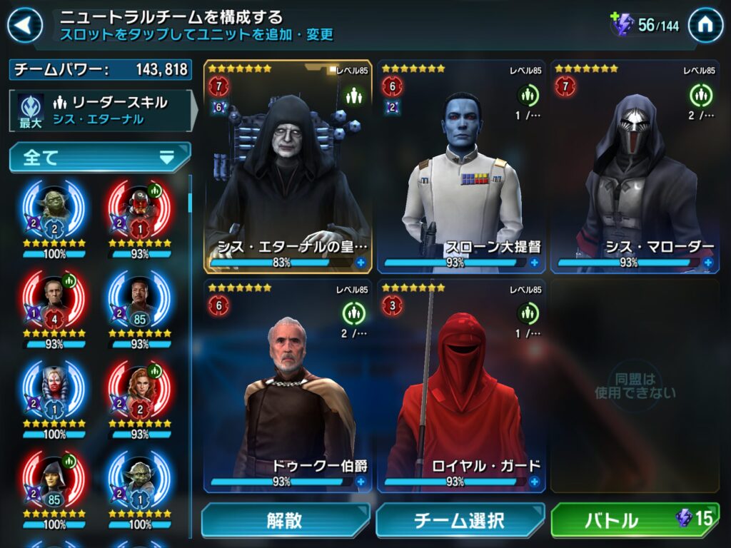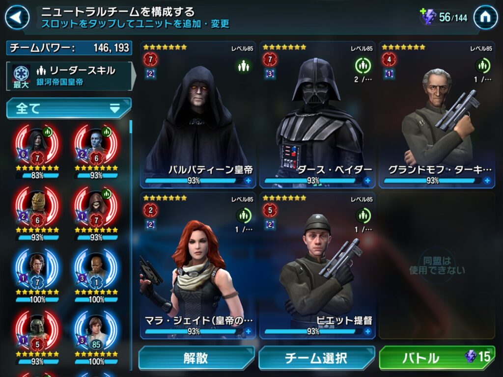 私のベイダー卿チームでは難なく倒せましたが、GLレイアのチームはボロ負けでした。